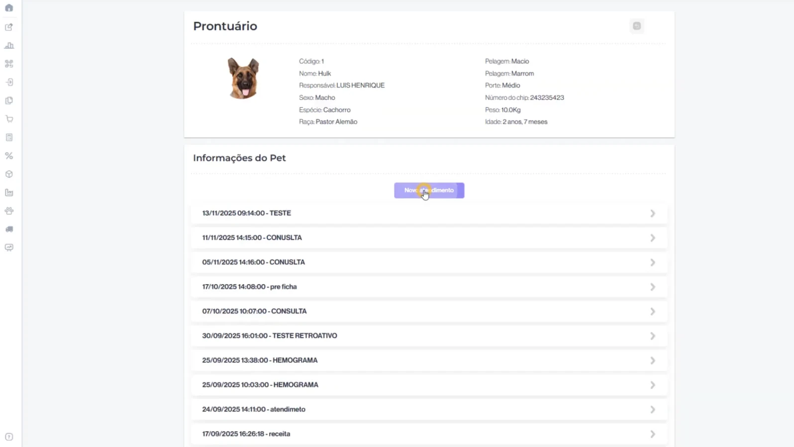 Tenha controle total da operação veterinária e dos serviços do pet shop, com registro completo do histórico de cada animal.